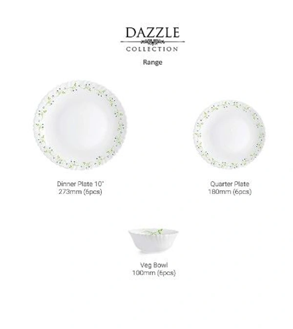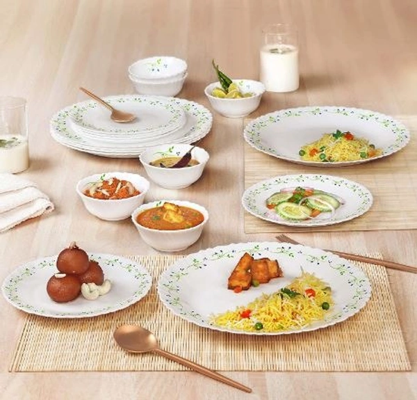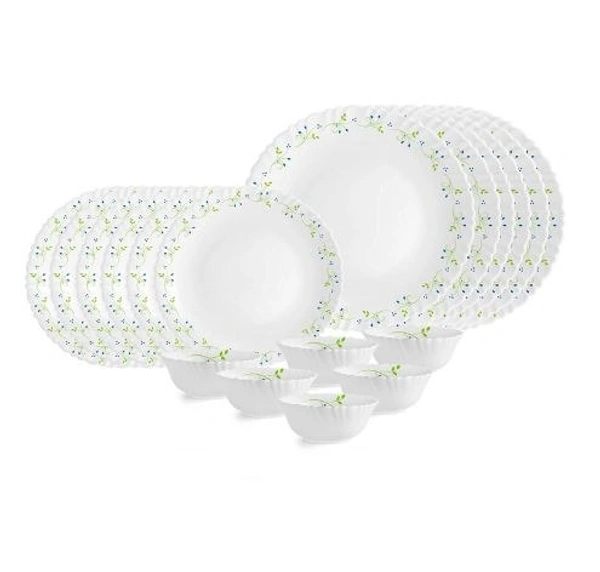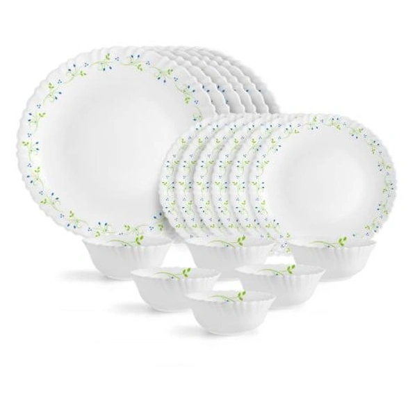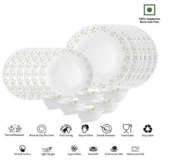Opal Glass Dinner Set for 6 | Light-Weight, Daily Use Crockery Set for Dining | White Plate and Bowl Set