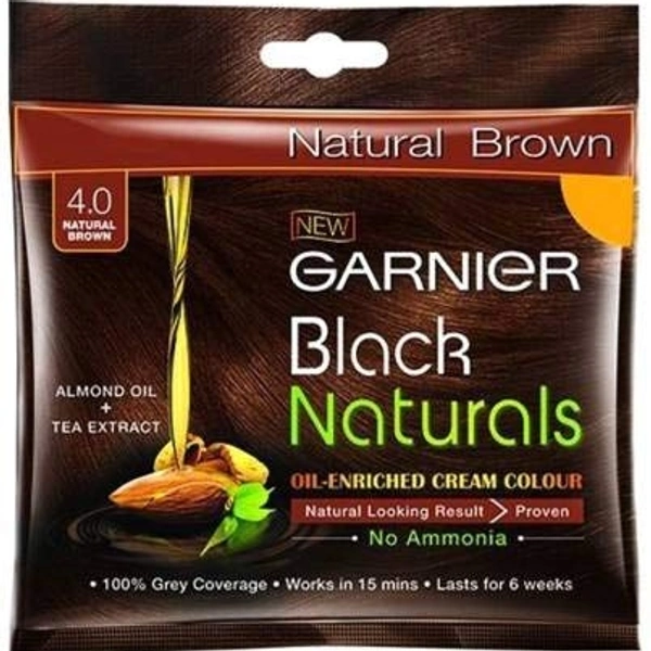 Garnier Black Naturals Creme Hair Color, 4.0 Natural Brown 20ml+20g
