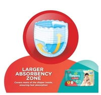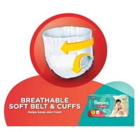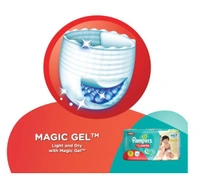 Superior overnight dryness with pampers magic gel technology. Keeps baby skin fresh with breathable soft belt and cuffs. Cotton like softness. Skin Protection: Contains lotion. Comfortable fit with flexible waistband. Let your baby's skin breathe easy with the airy, soft comfort offered by the Pampers diapers. These tape style Pamper diapers are easy to put on your baby and change, which comes as a great help to mothers. These comfort fitting diapers with stretchable sides are best for your baby's rest and playtime Offering complete care and protection, these baby diaper will help keep your baby smiling and comfortable at all times. With Magic gel layer, these baby diaper offers overnight dryness and protects your baby's delicate skin from rash.